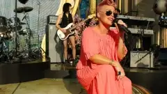 Nicki Minaj tem problemas com figurino e fica com seios à mostra em show